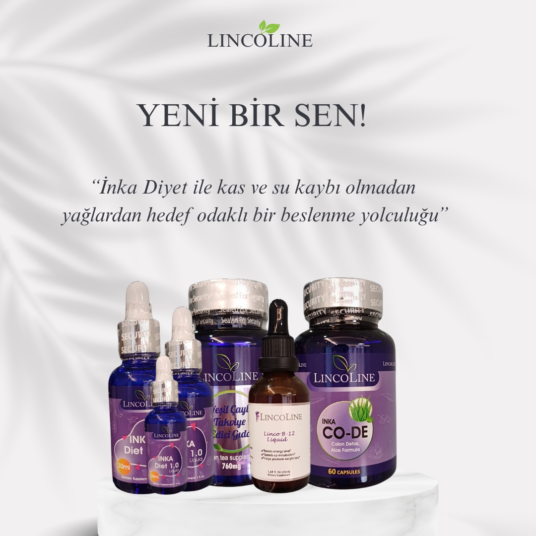 LINCOLINE INKA Diet 1.0 Liquid, içeriğinde L-Ornitin, L-Karnitin, L-Arjinin, L-Glutamin, DMAE (dimetil amino etanol), Vitamin B3 (Nikotinamid) ve bitki kaynaklı desteklerle formüle edilmiş bir takviye edici gıdadır.